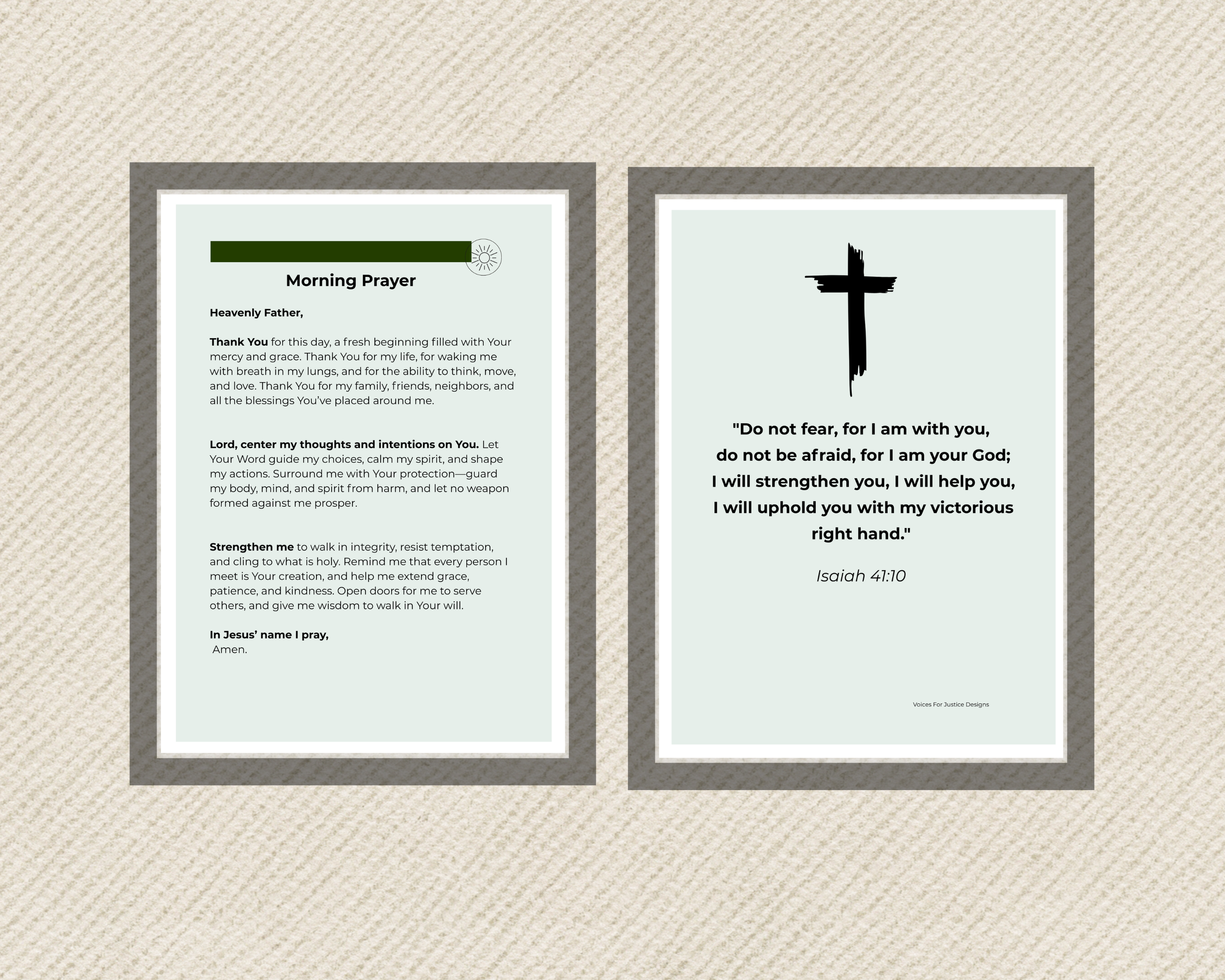 This Morning Prayer Card is designed as a gentle daily companion — a moment of stillness before the day unfolds. Featuring a thoughtfully written morning prayer and the comforting words of Isaiah 41:10, this card offers reassurance, encouragement, and spiritual focus for anyone seeking peace and guidance.